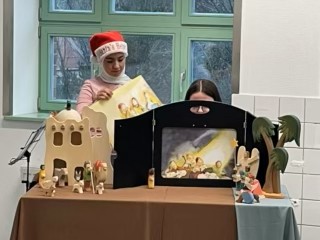 Angehende Kinderpfleger/innen und Kita-Kinder auf den Spuren der Weihnachtsgeschichte